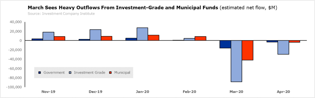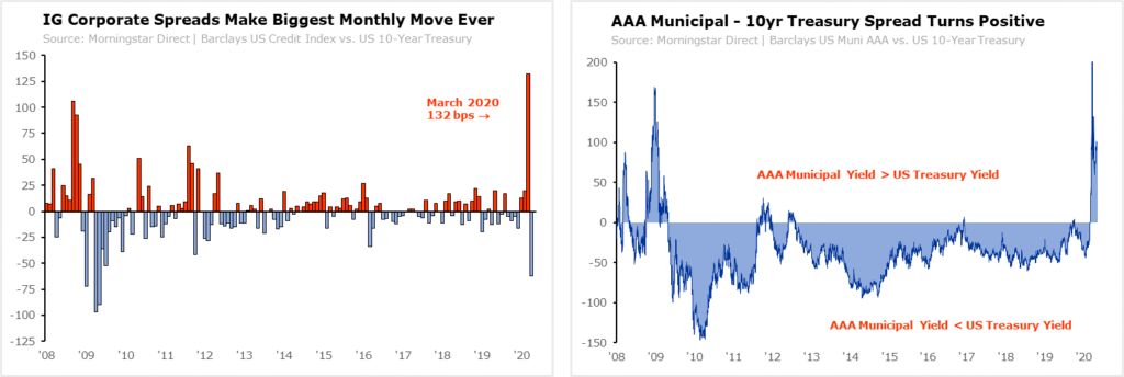 While stocks garnered a majority of the headlines, the fixed income markets were subject to extraordinarily  high levels of volatility during the March/April timeframe, and the potential for major dislocations in the credit markets as a result of the COVID-19 outbreak was actually the main culprit sending equity prices lower at times. When the implications of the pandemic for economic and business activity started to become apparent we saw investors look to exit credit-sensitive fixed income assets; this is referred to as a “flight-to-safety” trade which is typical in periods where risk sentiment becomes particularly acute. This time however investors apparently decided to collectively expand their definition of risky assets, and the “flight-to-safety” trade evolved into a “sell-everything-that-is-not-a-US-Treasury” trade.