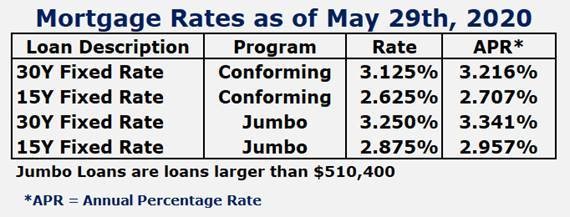 I would remiss in my mortgage banking duties if I did not let you know where rates are today for you and your client’s benefit.  A little bit higher than last week, but not by much.  Below and attached is a quick snapshot of current Interest Rates: